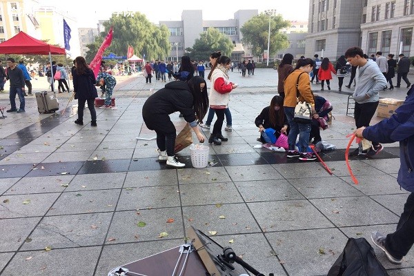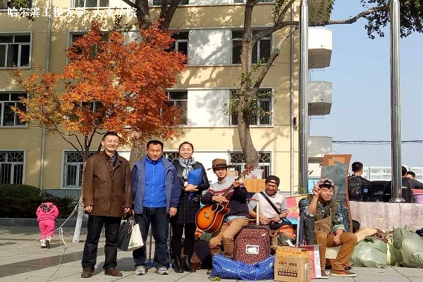 从早上天空的阴阴沉沉,到接近正午时分的艳阳高照,天气也好似与人心灵相通似的让人愉悦。奥列霍夫广场上突然传来一阵歌声和着鼓声,原来是几位少数民族男同学趁着等待进入寝室的空当,悠闲地开展起了“街头表演”。两把吉他,一架手鼓,就构成了他们的舞台,即使没有麦克和灯光,也丝毫不影响他们的兴致。头戴宽檐帽、脚踩马丁靴、手握木吉他,在稍显杂乱与慌张的搬寝中,他们仿佛民谣歌手般轻声歌唱,颇有一丝自在与闲适,用音乐为自己划出了一份同周围环境不同的小天地。于是,这轻快舒朗的弹奏声飘荡在奥列霍夫广场上,抚平了大家焦躁的心。随着表演的开始,围观的同学越来越多,他们也成为了朋友圈里的明星歌手,再一次代表太阳官网学生展示出了青春与活力的色彩。