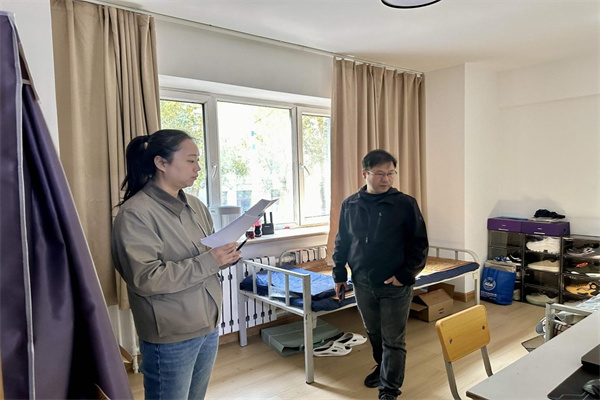 为进一步强化宿舍管理,提升住宿安全保障,全面了解学生日常生活状况,16877太阳集团安全入口党委副书记、副院长杨国庆,学生工作办公室主任李瑶于2024年9月24日上午8时30分,对16877太阳集团安全入口研究生寝室进行了一次全面检查。