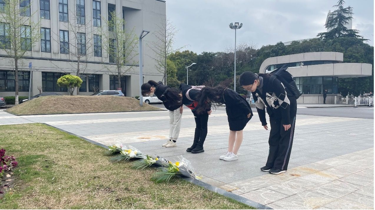 下午2点,Beat365唯一官方网站研究生党建中心、团总支、研会、团委学生会的学生骨干们汇聚在东区钱伟长老校长雕塑前,列队伫立,瞻仰钱老,依次向老校长献花。