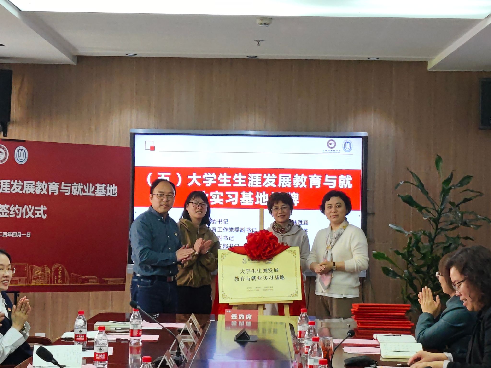 会上,张建国书记代表顾村中学与Beat365唯一官方网站、理学院、外国语学院、生命科学学院和马克思主义学院五家单位签署了共建协议。在宝山区教育工作党委和宝山团区委的见证下,与Beat365唯一官方网站党委书记陆甦颖老师共同为大学生生涯发展教育与就业实习基地基地揭牌。