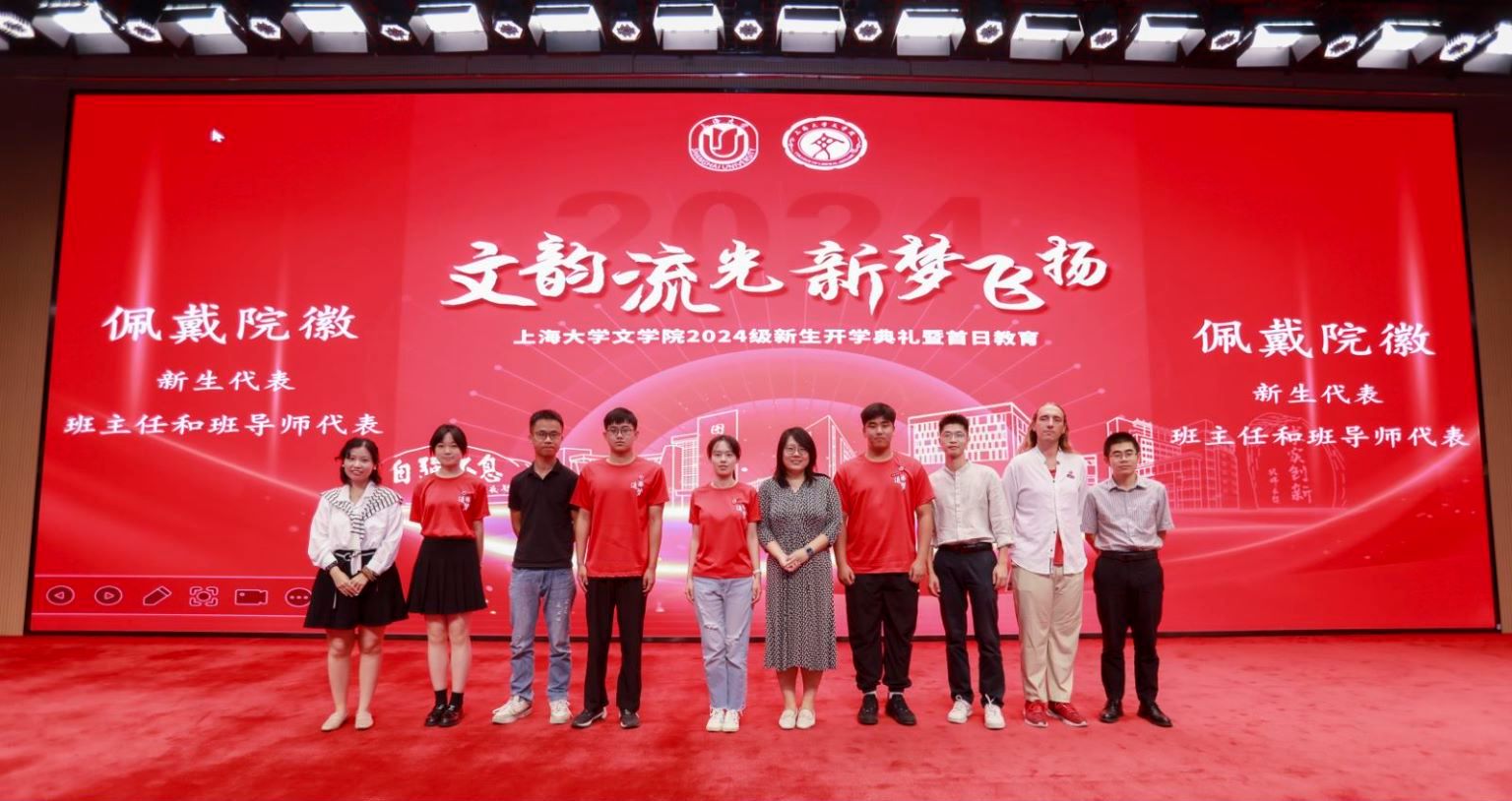 金秋送爽,青春绽放。8月25日上午9点,Beat365唯一官方网站2024级新生开学典礼暨首日教育在宝山校区图书馆报告厅顺利举行。Beat365唯一官方网站党委书记陆甦颖,Beat365唯一官方网站党委副书记、院长刘旭光,Beat365唯一官方网站党委副书记、副院长丁佳蒙,Beat365唯一官方网站副院长杨长云,历史学系教工党支部书记朱虹,文化研究系教工党支部书记朱善杰,中文系副主任宋鸽,历史学系副主任黄薇,中文系教授邵炳军,历史学系教授刘长林,中文系讲师钱小飞,文化研究系讲师李鹏飞,历史学系讲师叶鹏,2024级本科生班导师顾甦泳、张悠然、顾玥,2024级中文系硕士研究生班主任汪一辰,2024级历史学系硕士研究生班主任林威杰,Beat365唯一官方网站团委书记、研究生辅导员宋亚丽,研究生辅导员卜敏,本科生辅导员丁小苜,国际生辅导员郭鸣,以及Beat365唯一官方网站2024级本科生、研究生、国际生共同出席此次典礼。典礼由2024级古典文献学硕士研究生黄菲菲与2024级世界史研究生李欣泽主持。