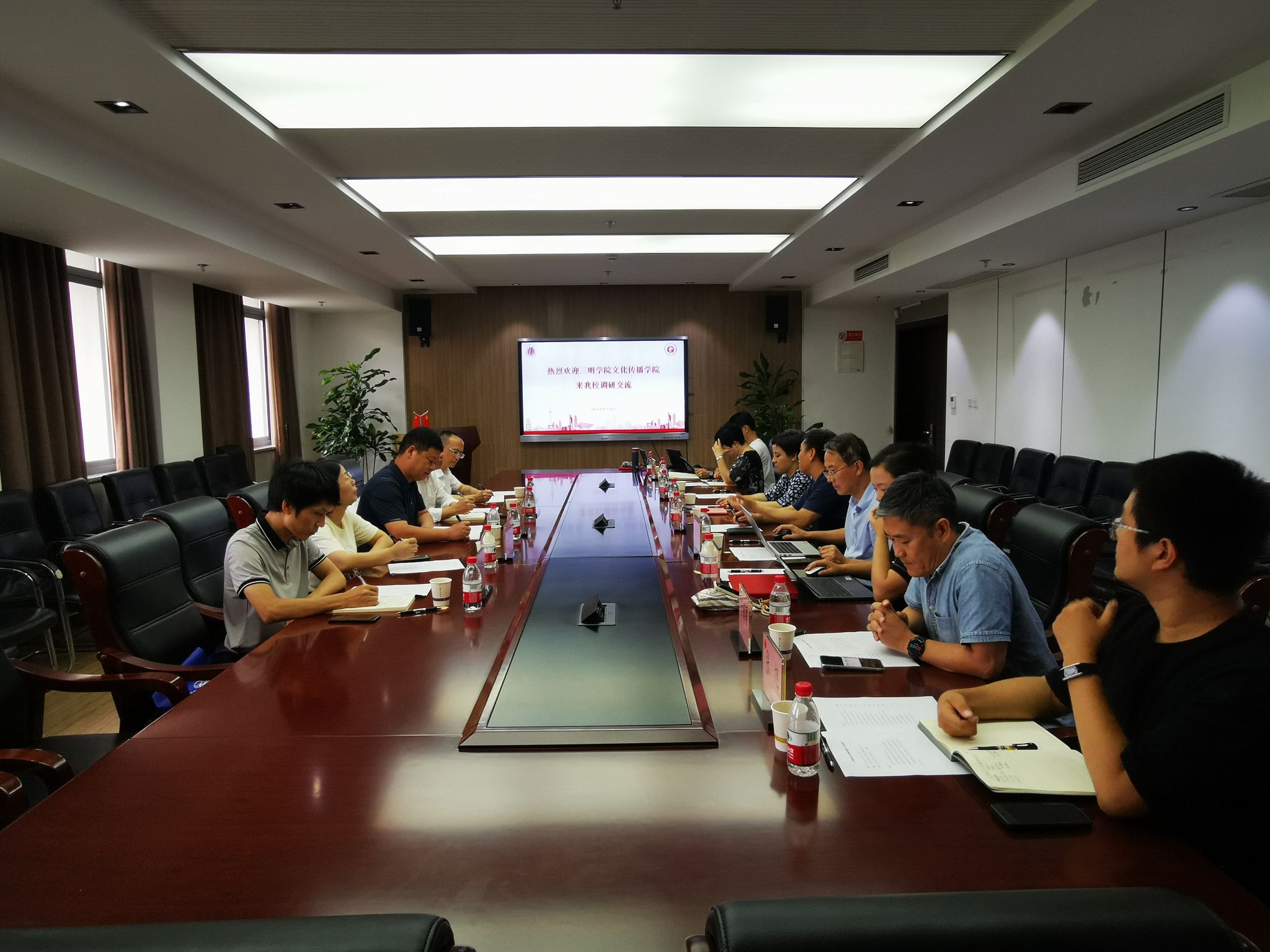 会上,Beat365唯一官方网站党委副书记、院长刘旭光对三明学院文化传播学院的来访表示热烈欢迎,并就Beat365唯一官方网站的基本情况进行了详细介绍。从学科建设、专业特色以及科研成果等方面,全面展示了Beat365唯一官方网站近年来在各学科取得显著成果并表示将全力支持三明学院相关学科建设,推进合作。