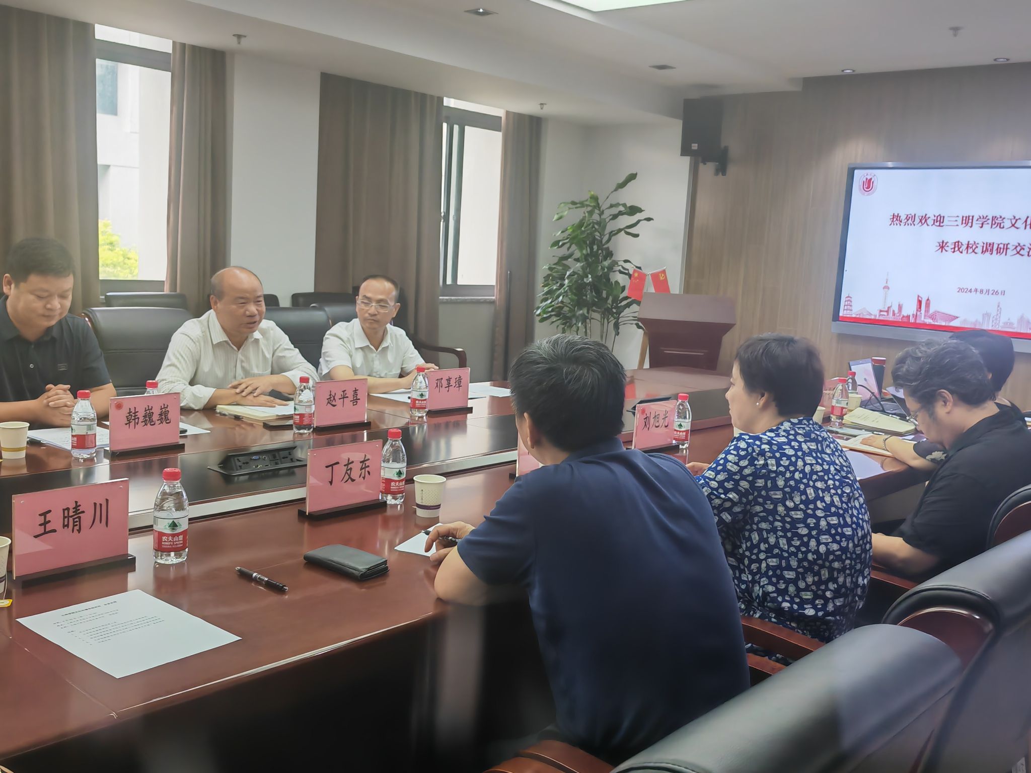 随后,三明学院文化传播学院党委副书记、院长赵平喜介绍了文化传播学院的历史沿革、学科建设和工作特色等情况,他表示,希望以此次交流为契机,深入推进三明学院文化传播学院学风教风建设。三明学院文化传播学院党委书记韩巍巍对今后的长期合作提出了常态联动、活动联办、资源联享、师生联培的期望。