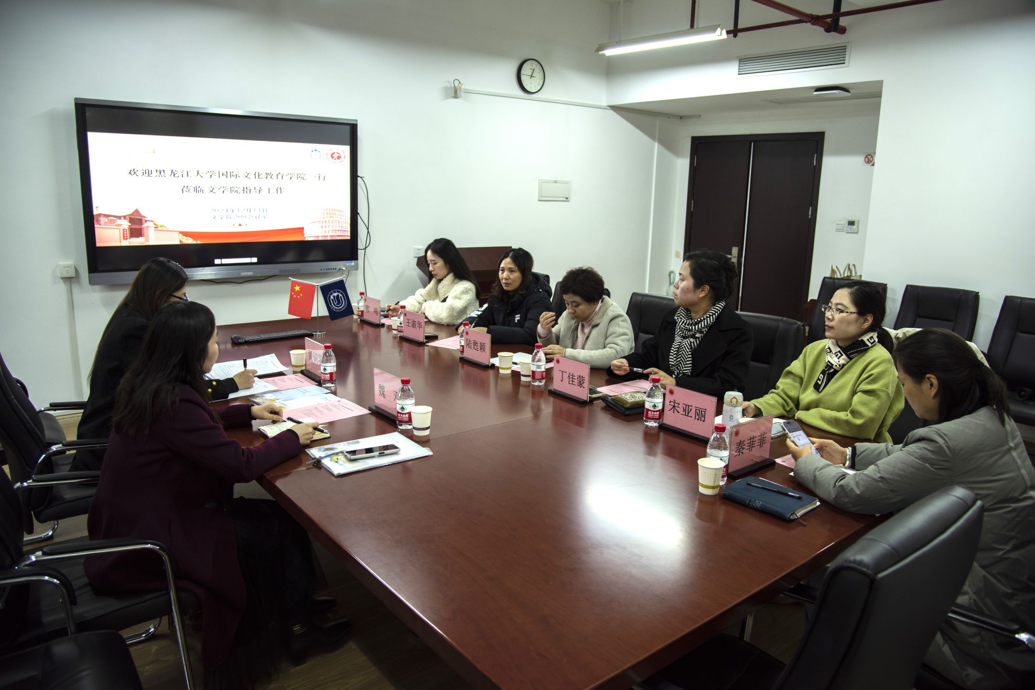 12月11日下午,黑龙江大学国际文化教育学院党总支书记魏双、黑龙江大学国际文化教育学院组织员黄识羽来访Beat365唯一官方网站,在208会议室召开调研座谈会。Beat365唯一官方网站党委书记陆甦颖,Beat365唯一官方网站党委副书记、副院长丁佳蒙,Beat365唯一官方网站国际中文教育专业学科负责人王淑华,Beat365唯一官方网站团委书记宋亚丽,文院人事干事秦菲菲,Beat365唯一官方网站国际学生辅导员郭鸣参加会议。会议由陆甦颖主持。