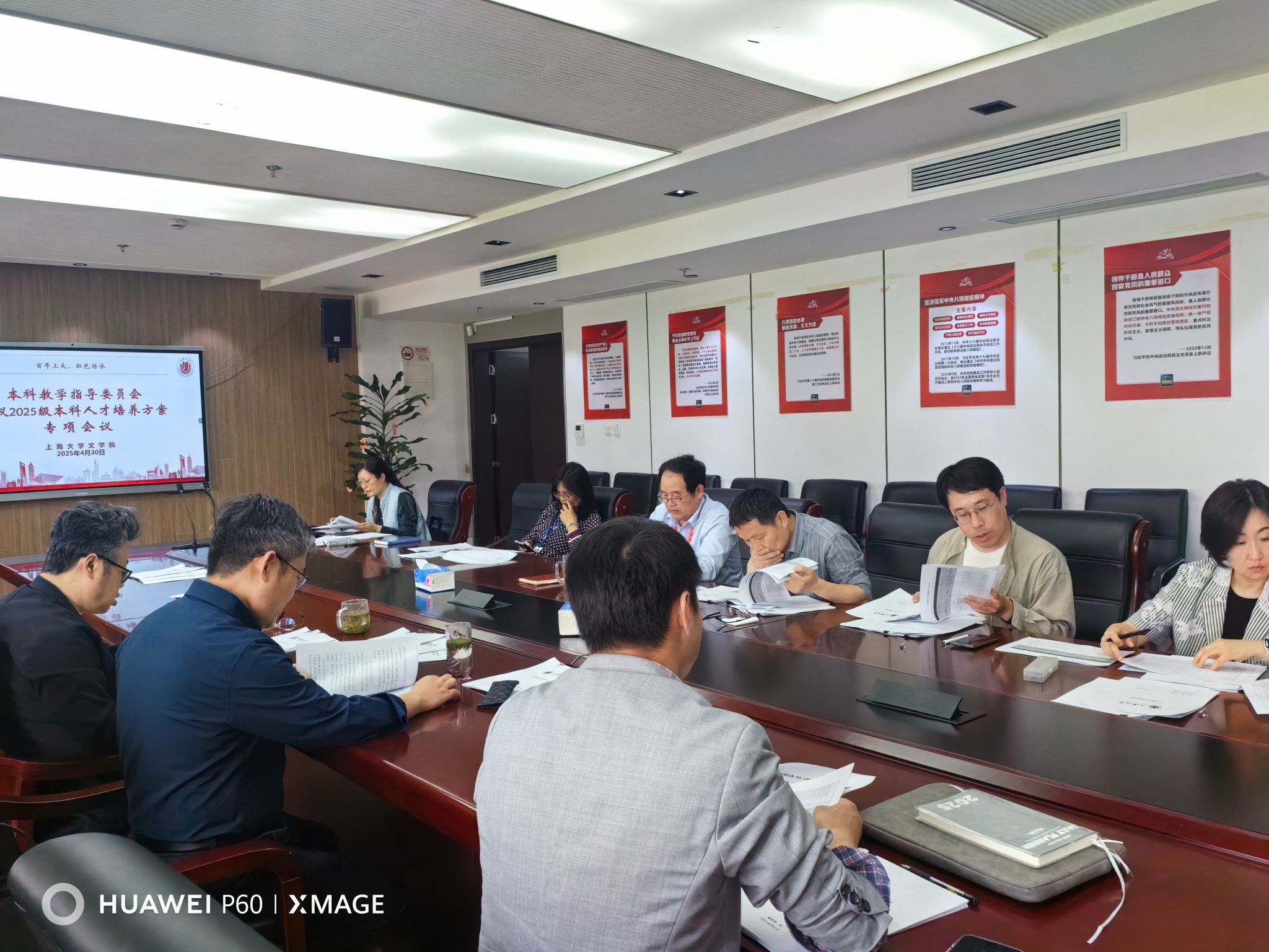 2025年4月30日下午,Beat365官网在Beat365唯一官方网站306会议室召开了2025级本科人才培养方案审议会。学院本科人才培养方案修订工作领导小组组长、学院教学指导委员会主任、院长刘旭光,副院长宁镇疆、杨长云,学院教学指导委员会成员黄景春,中文系主任张永禄、历史系主任郭丹彤,系副主任张宇超、黄薇,本科教学秘书聂林媛、薛飞参加此次会议。