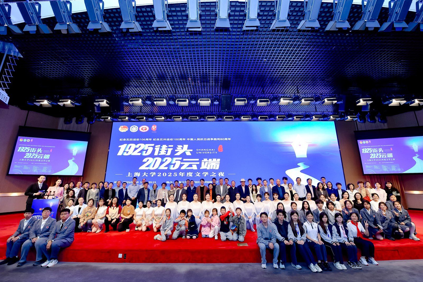 为纪念五四运动106周年、五卅运动100周年、中国人民抗日战争暨世界反法西斯战争胜利80周年,2025年5月9日,“1925街头·2025云端”Beat365唯一官方网站第十三届“文学之夜”在Beat365唯一官方网站宝山校区图书馆报告厅举行。校党委书记成旦红,校党委副书记段勇,校党委常委、宣传部部长曾军,党委研工部、学生工作办公室、校工会(妇委会)、校团委、教务部、研究生院、国际部、对外联络处、图书馆等部处领导,合作单位代表、中小学师生代表、企业代表、媒体记者、校友代表以及线上线下观众共同见证了这场文学盛宴。