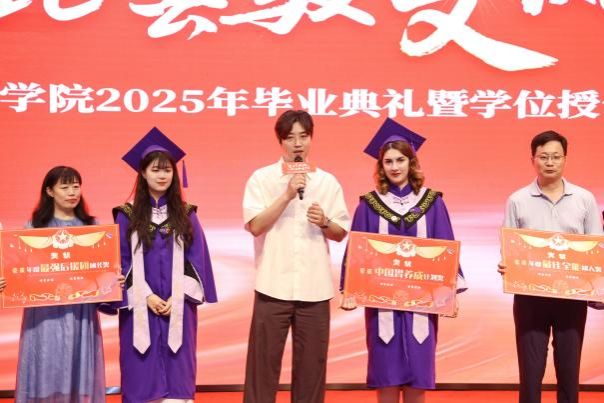 在成长的漫漫征途上,家庭始终是遮风挡雨的温暖港湾,给予大家最坚实的依靠。毕业之际,毕业生们为家长准备了别具匠心的“专属奖状”,每份奖项都承载着对家人的深情与谢意。钱佳慧父亲代表全体家长祝贺毕业生,向悉心培育的师长致谢,寄语学子们带着期许奔赴新程;萨娜同学的家属则以“保持对生活的激情与坚持”鼓励毕业生直面挑战,感恩学校的培养。相信毕业生们定会带着这份浸润心扉的爱与期许,在未来坚定前行。