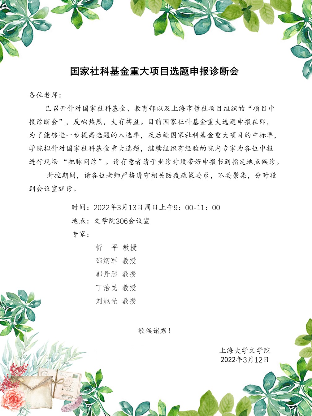 在上下同心战“疫”的特殊时期,同时正值国家社科基金、教育部和上海市以及其他省部级项目申报的冲刺阶段,为了能够进一步提高申报成功率,Beat365唯一官方网站党委严格执行“不聚集”、“戴口罩”、“保持社交距离”等相关防疫政策要求,先后举行了“项目申报诊断会”和“国家社科基金重大项目选题申报诊断会”,有力有效推进科研工作。