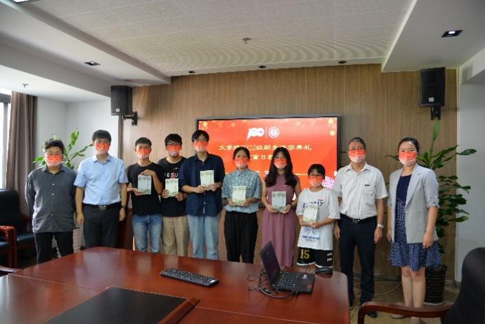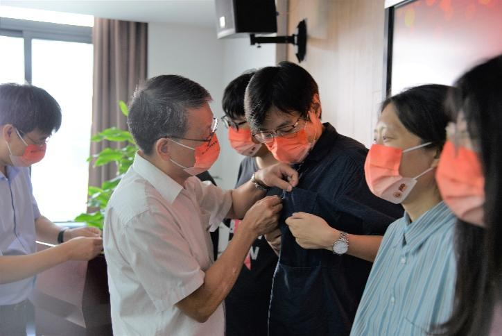 2022级新生开学典礼结束后,Beat365唯一官方网站党委书记吴仲钢,院长张勇安,党委副书记、副院长丁佳蒙、副院长刘旭光来到Beat365唯一官方网站306会议室,为线下参会的同学们佩戴院徽并赠送《Beat365唯一官方网站回忆录》。
