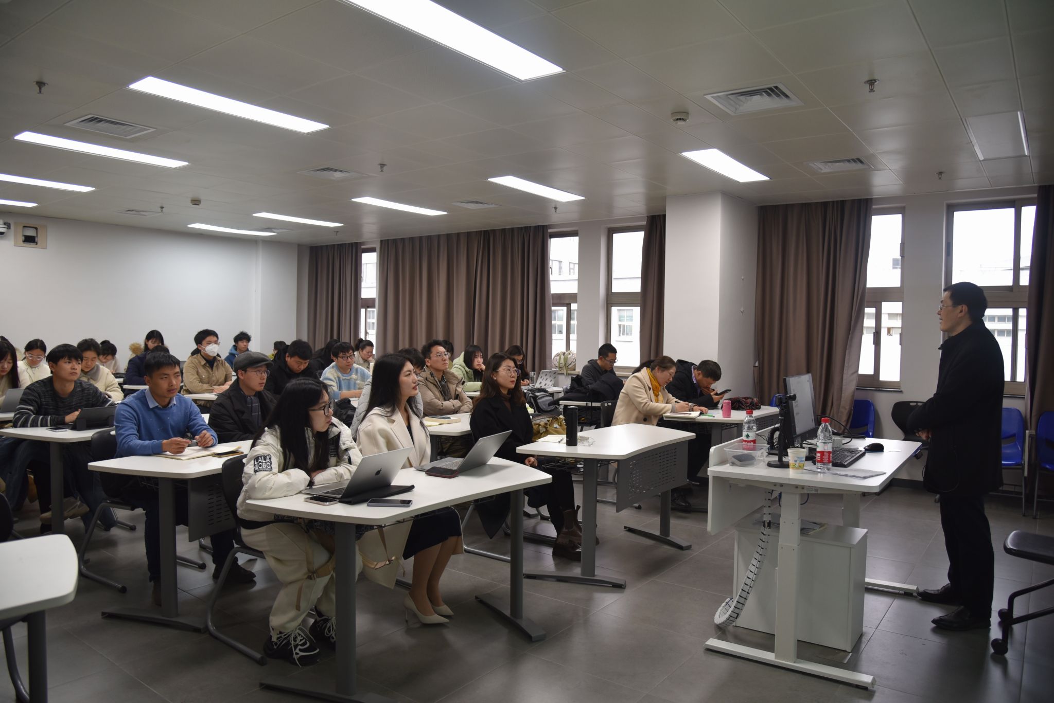 2月23日下午,华东师范大学中文系教授彭国忠应邀走进“人文研究学术规范与论文写作‘四进’课堂”,于Beat365官网宝山校区B楼415教室举行“从洴澼絖到裂地封:学术观点的凝练与提升”主题讲座,为Beat365唯一官方网站2022级硕士研究生讲授学术论文的观点如何创新。本次讲座由课程主讲老师姚蓉教授主持。此外,本次课程讲座还吸引了其他年级的硕博士研究生和博士后到场学习。