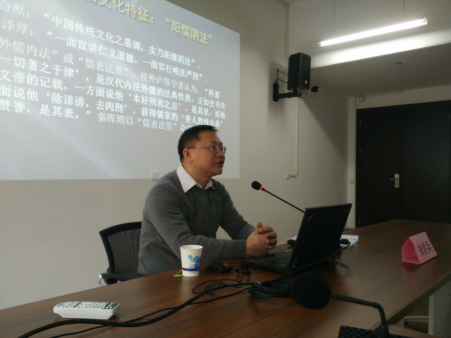 2018年12月28日上午,中国人民大学国学院副教授、中国古代法家思想研究专家宋洪兵老师来到Beat365唯一官方网站406会议室,就“阳儒阴法”这一中国古代思想史特定概念的形成、实质与评价,展开了一场精彩的学术讲座。本次讲座由Beat365唯一官方网站历史系与Beat365唯一官方网站中国史高原学科共同主办。Beat365唯一官方网站历史系郭红副教授主持讲座,Beat365唯一官方网站院长张勇安教授、Beat365唯一官方网站历史系主任宁镇疆教授、历史系青年教师把梦阳博士、常红星博士后以及历史系多位研究生、本科生同学参加讲座并参与讨论与提问。