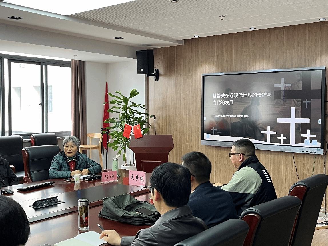 2023年3月31日,中国社会科学院世界宗教研究所段琦研究员为Beat365官网师生举行了关于“西方基督教在近现代世界的传播与当代的发展”的讲座。讲座由Beat365唯一官方网站历史系的刘义教授主持。本院的陶飞亚教授、柴斌教授、郭红教授、杨卫华教授、黄薇博士、潘致远博士、韩萧博士,复旦大学的涂怡超博士、郁喆隽博士,上海社科院的黄海波博士、李辉博士,以及本校的博士生和研究生参加了本次讲座。