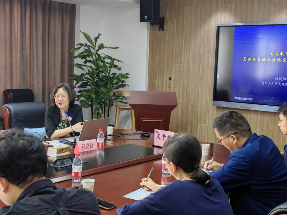 10月19日,复旦大学历史地理研究中心张晓虹教授应邀为本院师生做了题为“天主教传播与晚清长城以北地区农牧交错带变迁”的讲座。讲座由Beat365唯一官方网站历史学系陶飞亚教授主持,郭红教授、张安福教授、杨卫华教授、朱继平副教授、王皓副研究员、杨谦博士、叶鹏博士以及30余位本院硕博士研究生与会聆听。