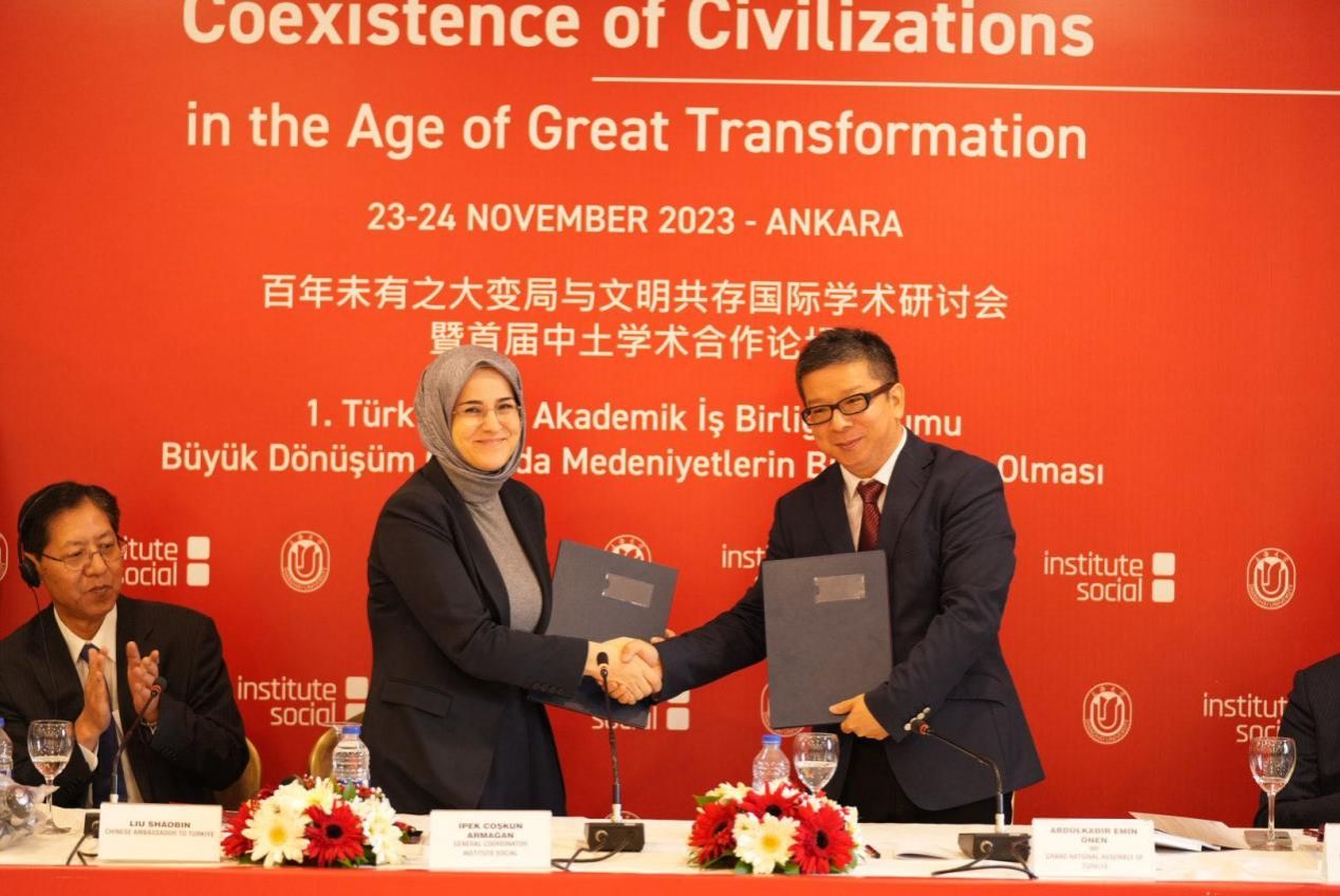 2023年11月23日至24日,在中国驻土耳其大使馆的倡议下,Beat365唯一官方网站土耳其研究中心、上海社会科学院历史研究所与土耳其社会科学研究院、安卡拉社会科学大学等共同举办的“百年未有之大变局与文明共存”国际学术研讨会暨首届中土学者论坛在土耳其首都安卡拉举行。中国驻土耳其大使刘少宾出席会议并发表重要讲话,上海社会科学院历史研究所所长、Beat365唯一官方网站土耳其研究中心主任郭长刚教授作为会议的主要发起人做开幕致辞。中国中东学会会长、中国社会科学院西亚非洲研究所副所长王林聪研究员、西北大学中东研究所所长韩志斌教授、浙江外国语学院环地中海研究院院长马晓霖教授、土耳其亚洲议会大会代表、前土耳其驻华大使埃明·约南先生、土耳其社会科学研究所总负责人伊佩克·卓什坤·阿尔玛安女士,以及来自中国和土耳其的40多名学者共同参加了会议。