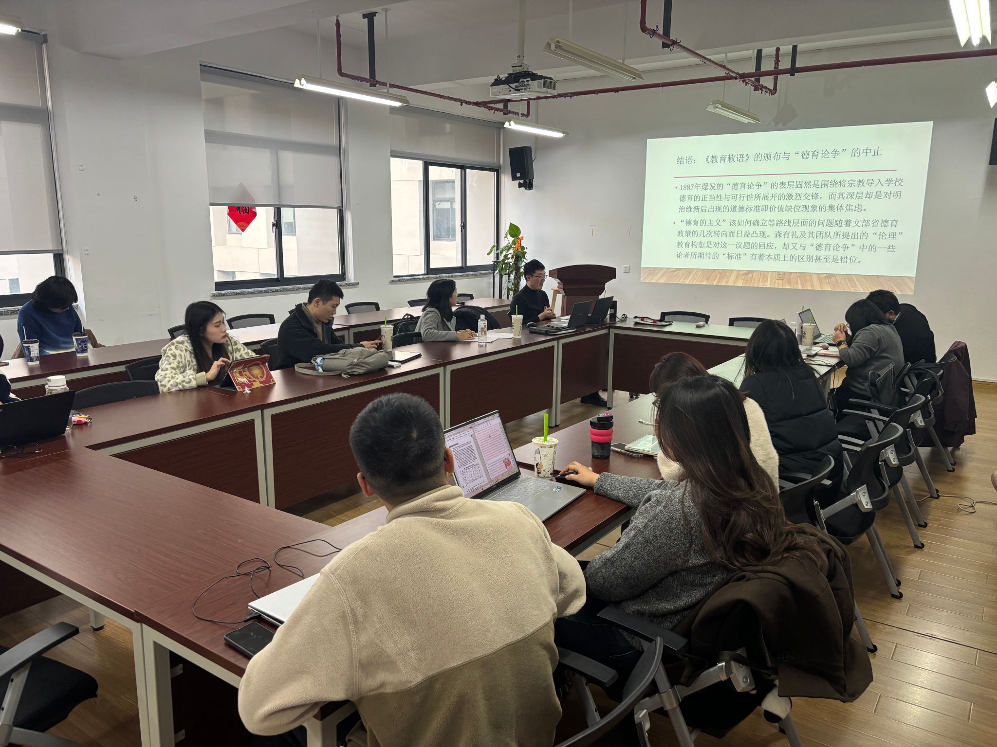 2024年12月20日下午,在学院406室Beat365唯一官方网站历史学系成功举办了第四期中日关系史讲坛。本次讲座的主讲人是上海交通大学林子博副教授,主题为《明治日本的“道德标准”:<教育敕语>颁布前夕的德育论争》。讲座由Beat365唯一官方网站历史学系朱虹副教授主持,张智慧副教授、孙若圣副教授、张弘毅博士后参与对谈,近二十名Beat365唯一官方网站硕士生、本科生参加。