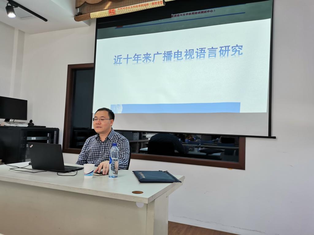 讲座伊始,袁伟副研究员幽默风趣地介绍了自己在广播电视语言研究方面的经验和见闻,令同学们记忆深刻。讲座中,袁伟副研究员就近十年来广播电视语言的发展状况展开报告,介绍了融媒体产生以来的语言政策及语言规范相关问题,并从多个视角解读了当前广播电视语言学所存在现象的原因。讲座分为三个部分:第一是广播电视语言学的研究概况,袁伟副研究员通过对2009—2018年中国知网收录的198篇论文进行整理,阐释了广播电视语言学的研究现状及与其他领域学科之间的关系。第二是广播电视语言学的具体研究情况,袁伟副研究员从语言规划视角、语言规范视角、传播学视角三个视角对宏观语境变迁下的广播电视语言学进行了分析。他指出,融媒体的产生使70%的电视台收视率下降,网络节目的增加对媒体语言的规范提出了要求,并列举了近年来我国出台的广播电视语言规范文件。同时,袁伟副研究员展示了近年来广播电视语言使用调查的情况,通过数据阐释了该领域存在的现象和问题,指出应充分利用人工智能,为广播电视语言研究做出贡献。第三是广播电视语言学的问题和建议,袁伟副研究员指出,建议要具有针对性,要与所存在问题相对应,切忌无病呻吟。