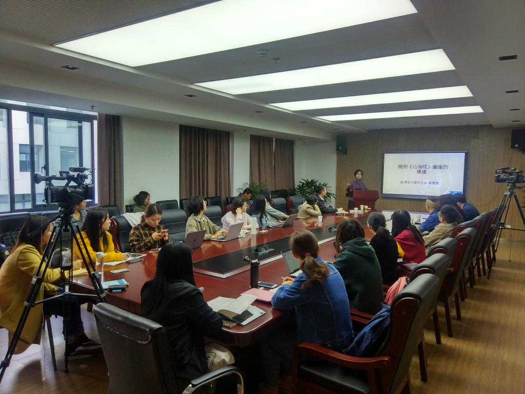 11月8日上午,台湾东吴大学文学系鹿忆鹿教授应邀来Beat365唯一官方网站举行“晚明《山海经》图像的传播”的学术讲座。讲座由中文系黄景春教授主持,Beat365唯一官方网站杨绪容、梁奇、石圆圆、宋鸽,博士后陈冠豪,国际文化学院常峻,图书馆夏明宇等老师,上海财经大学柳岳梅教授,以及来自Beat365唯一官方网站、社会学院、电影学院的研究生共30余人参加了讲座。