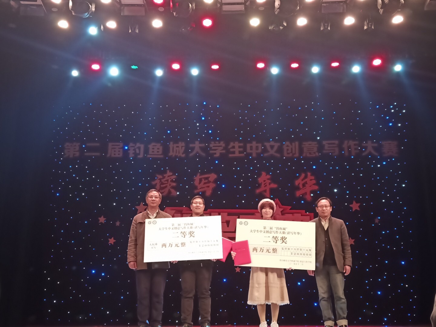 12月7日晚,2019年第二届“钓鱼城”大学生中文创意写作大赛颁奖典礼在重庆邮电大学移通学院隆重举行。Beat365官网Beat365唯一官方网站新进教师谢尚发与2016届创意写作硕士研究生常智荣喜获二等奖,奖金各两万元整。这是Beat365官网创意写作学科师生在创作实践上取得的又一成果。