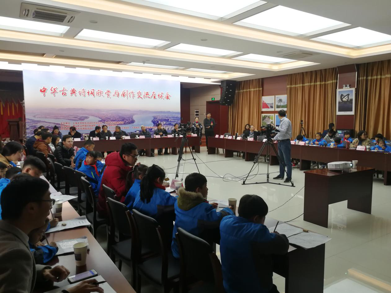 14日上午,于义桥镇人民政府举行中华古典诗词欣赏与创作交流座谈会。浙江省诗词楹联学会会长王骏,浙江省诗词楹联学会副会长尚佐文,杭州市诗词楹联学会会长章剑清,杭州市诗词楹联学会副会长王翼奇,杭州市诗词楹联学会副会长朱超范,萧山区诗词楹联学会副会长吴容,义桥镇党委宣传统战委员俞国龙,镇党委委员、副镇长洪叶飞,以及来自义桥镇诗词楹联学会的诗词爱好者,渔浦小学的40多位师生一同参加活动。