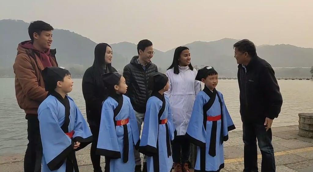 下午三时左右,专家学者与诗词爱好者们共同泛舟湘湖,活动全程采取直播的形式,直播热度近9万人次。曹辛华教授和各位专家学者即兴赋诗、吟诵,普通话、常州话、福建流水调、台湾鹿港调和歌仔调等多种方式的吟诵兼容并蓄,优美动听。同时专家教师们对到场的外国友人和小学生进行现场教学,并分享了自己对吟诵学习和推广的心得,大家互相切磋、共同琢磨,致力于传播吟诵文化,承君子之风,传雅言之道,半日逍遥,令人难忘!