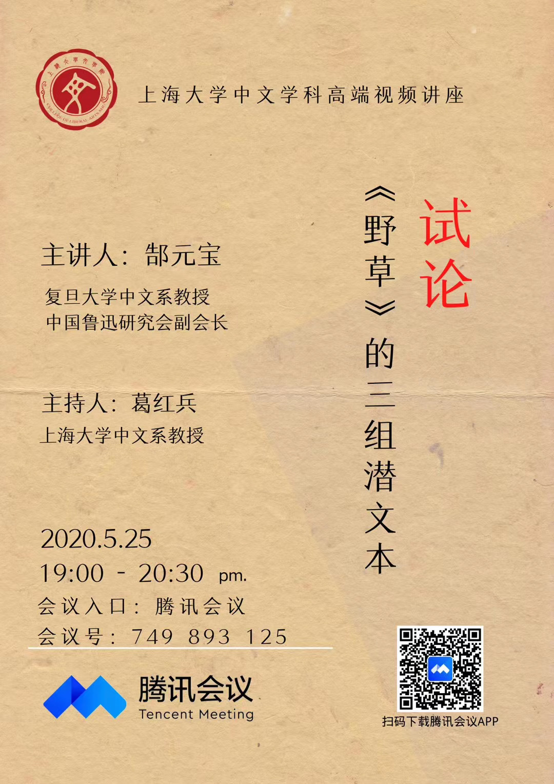 5月25日晚,中文系举办高端视频讲座,邀请复旦大学中文系郜元宝教授主讲《试论<野草>的三组潜文本》,讲座由中文系葛红兵教授主持。