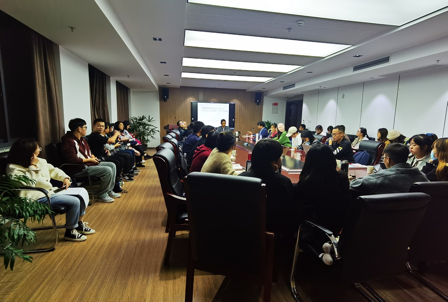 11月20日晚,在学院306会议室,南京大学Beat365唯一官方网站教授、校长助理吴俊受Beat365唯一官方网站之邀,进行了题为“媒介的文学生产——世纪之交以来的一个文学问题”的讲座。讲座由中文系教授谭旭东主持,中文系钱文亮教授、张永禄教授、朱羽副教授等三十多名师生共同参与了讲座。