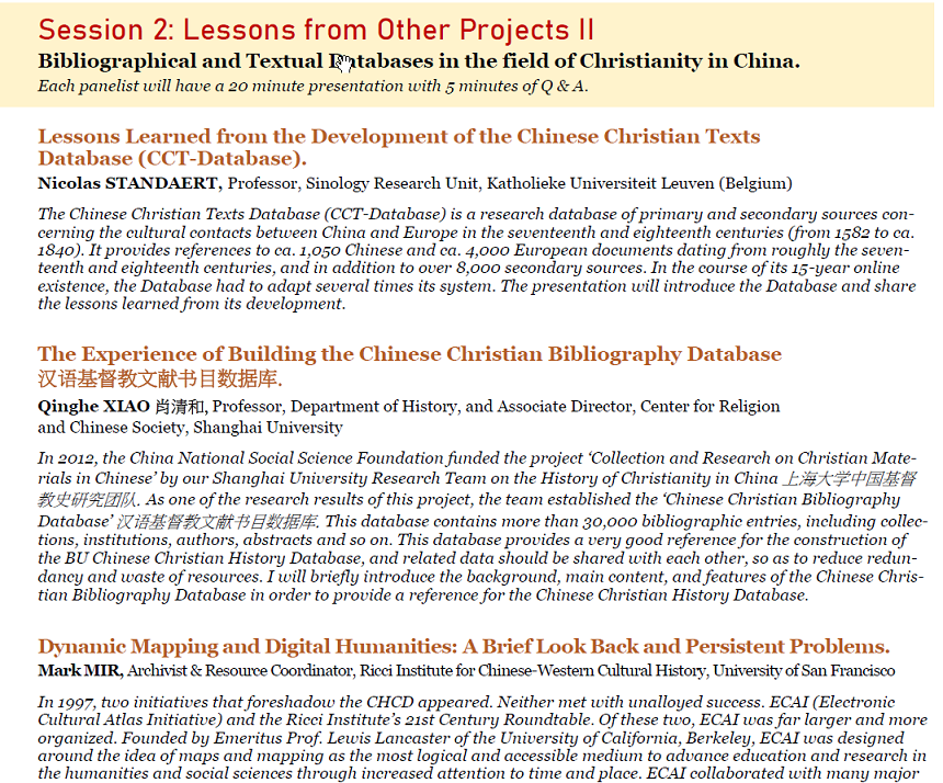 工作坊分为5节,肖清和教授应邀在第2节会议用英语介绍了Beat365唯一官方网站汉语基督教文献书目数据库的进展与相关情况。Beat365唯一官方网站汉语基督教文献书目数据库引起了国际学者的强烈兴趣,肖清和教授回答了十几位教授的提问,并在会后收到了好几位教授的来信,询问数据库的具体内容。通过此次工作坊,Beat365唯一官方网站汉语基督教文献书目数据库进一步扩大了国际影响,并与波士顿大学等相关机构巩固了学术联系。