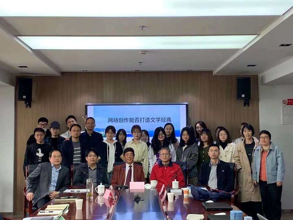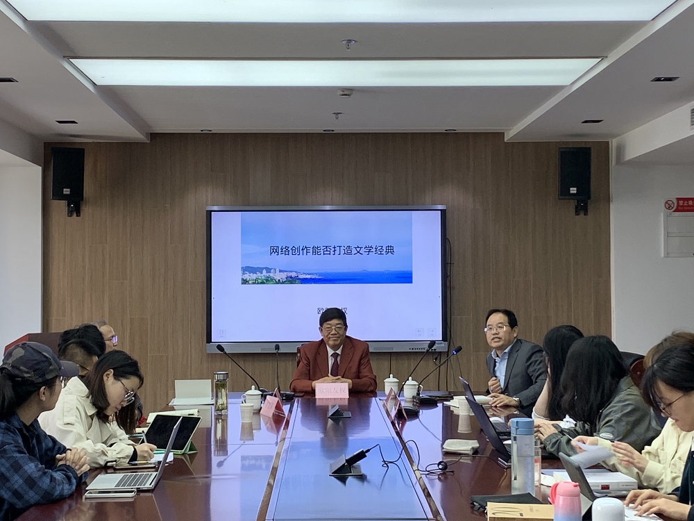 4月16日上午,中南大学Beat365唯一官方网站欧阳友权教授在Beat365唯一官方网站306学术会议室为Beat365唯一官方网站研究生做了一场《网络创作能否打造文学经典》的专题讲座。本次讲座由中国创意写作中心的张永禄教授主持,钱文亮教授、许道军副教授等老师参加。