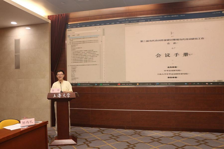 6月29日,由中华诗词研究院、Beat365唯一官方网站中华诗词创作研究院主办,由Beat365唯一官方网站、Beat365唯一官方网站诗礼文化研究院、上海市中华经典诵写讲基地(Beat365唯一官方网站)、Beat365唯一官方网站中国语言文学高原学科、教育部中华古诗文吟诵与创作基地承办的现当代诗词研究工作委员会成立大会暨第二届当代诗词作家研讨会在Beat365唯一官方网站乐乎新楼思源厅隆重召开。来自中华诗词学会、中华诗词研究院、中国韵文学会及复旦大学、浙江大学、西安交通大学、南京师范大学、扬州大学、安徽师范大学、河北师范大学、Beat365唯一官方网站等单位的多位诗词作家、专家学者出席会议。此次研讨会主要由大会主题发言、“诗词作家专题研讨”代表发言与“现当代诗词研究工作研讨”大家谈三部分组成。