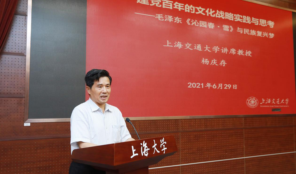 开幕式后,第二届当代诗词作家研讨会正式召开。首先,与会专家分三场进行了大会主题发言。第一场发言由浙江大学博士生导师、中国韵文学会会长肖瑞峰教授主持。上海交通大学博士生导师杨庆存教授发言。中华文化积淀着中华民族最深沉的精神追求,是中华民族生生不息、发展壮大的丰厚滋养。毛泽东的词作《沁园春·雪》,气势磅礴、境界高远、艺术精湛,是中华传统优秀文化与革命现实主义、革命浪漫主义创作手法相结合的典范。