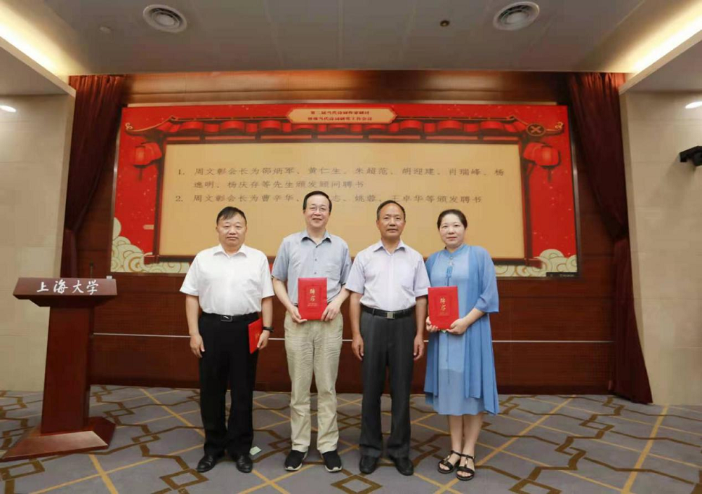 接着,中华诗词学会副会长范诗银先生宣布《中华诗词学会现当代诗词研究工作委员会代表名单》。周文彰会长为曹辛华教授颁发“中华诗词学会现当代诗词研究工作委员会”主任聘书,为邵炳军、黄仁生、朱超范、胡迎建、肖瑞峰、杨逸明、杨庆存等到会代表颁发顾问聘书。