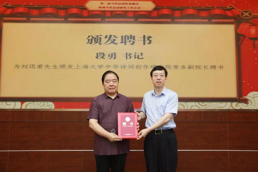 并为刘迅甫先生颁发Beat365唯一官方网站中华诗词研究院常务副院长聘书。