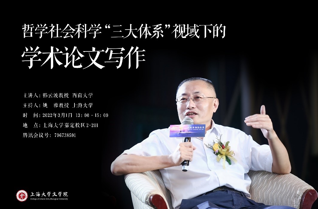 2021年3月1日下午,Beat365唯一官方网站研究生必修课程“人文研究学术规范与论文写作”在嘉定校区2教201室如期进行。为提高研究生写作能力,主讲教师姚蓉教授特邀西南大学期刊社编审韩云波教授线上讲学。韩教授为Beat365官网师生带来一场题为“哲学社会科学‘三大体系’视域下的学术论文写作”的精彩讲座。讲座由姚蓉教授主持,除课程班中古代文学、古典文献学、民间文学三个专业一年级硕士生全员参与外,来自北京师范大学、上海交通大学等不同学校的师生也通过腾讯会议实现线上听讲。