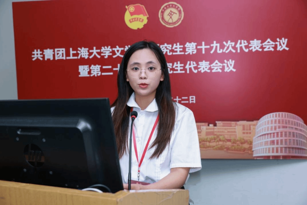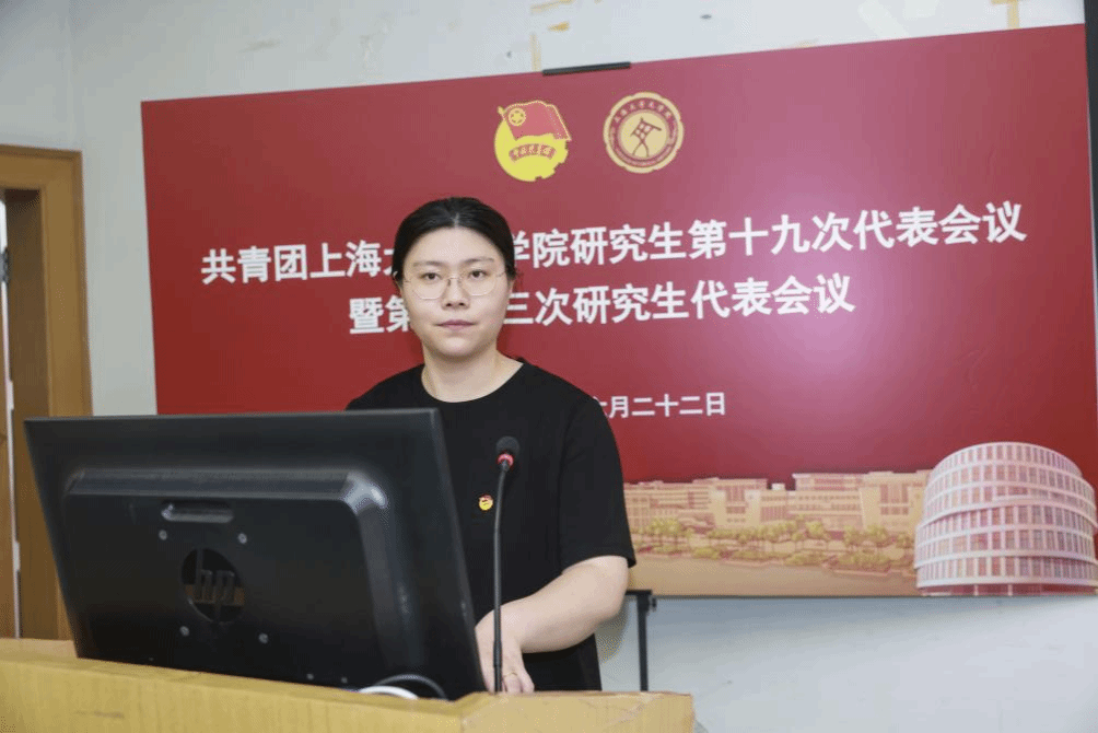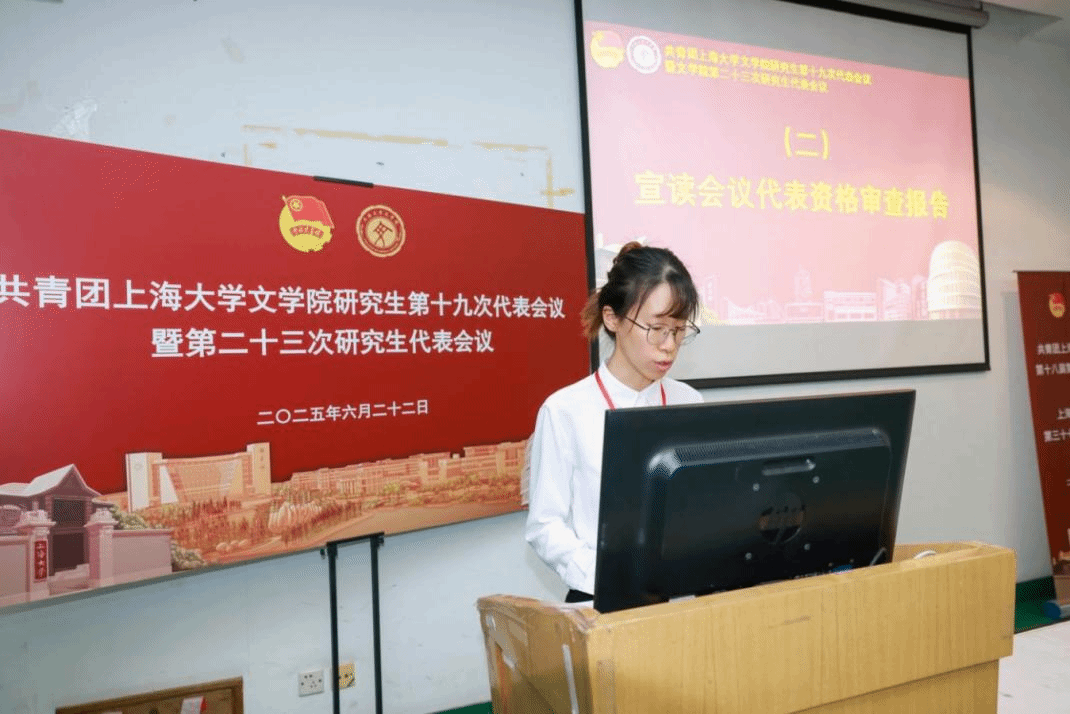 Beat365唯一官方网站第二十二届研究生联合会主席团成员徐慧琳宣读《共青团Beat365唯一官方网站研究生第十九次代表会议暨Beat365唯一官方网站第二十三次研究生代表会议代表资格审查报告》。