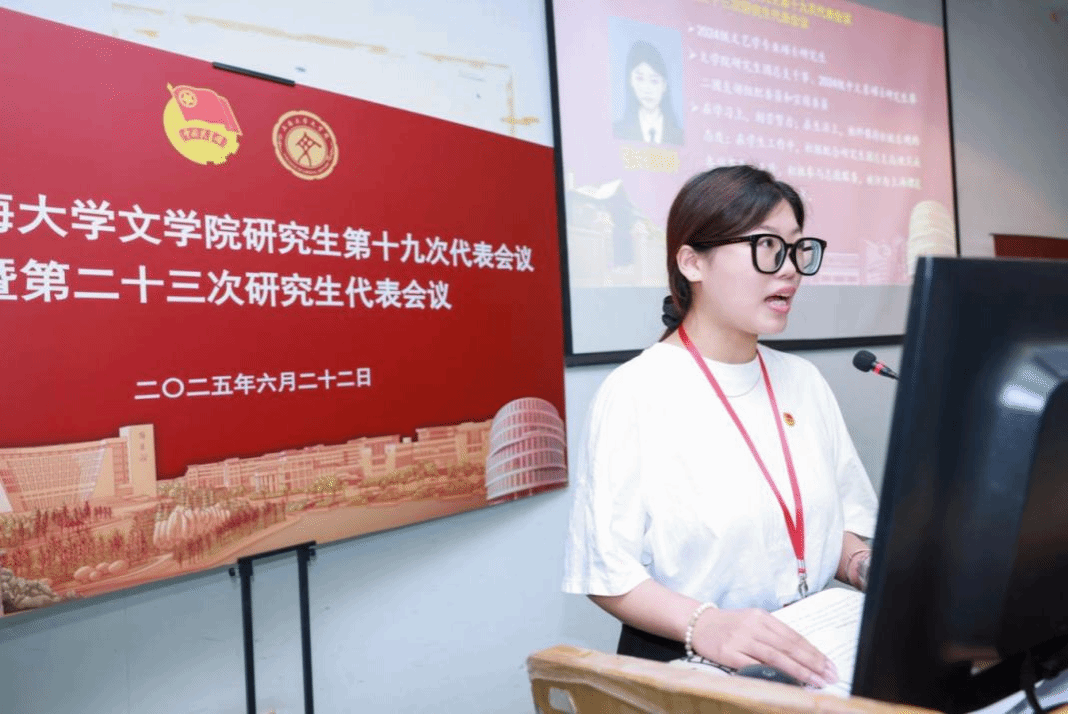 Beat365唯一官方网站第二十二届研究生联合会主席团成员张佳琦作题为《牢记嘱托启新程,坚守服务砺初心》的Beat365唯一官方网站第二十二届研究生联合会工作报告。该报告全面回顾了研究生联合会过去一年的工作成果与经验。Beat365唯一官方网站第二十二届研究生联合会始终秉持“全心全意为同学服务”的宗旨,在思想引领、组织改革、学术实践、就业指导、文体活动等方面开展了卓有成效的工作。通过深化理论学习、优化内部架构、打造品牌活动、服务同学需求,研会充分发挥了桥梁纽带作用,展现了文院学子的青春风采。报告同时反思了工作中的不足,为未来进一步提升服务效能、创新活动形式指明了方向,为下一届研会的发展奠定了坚实基础。