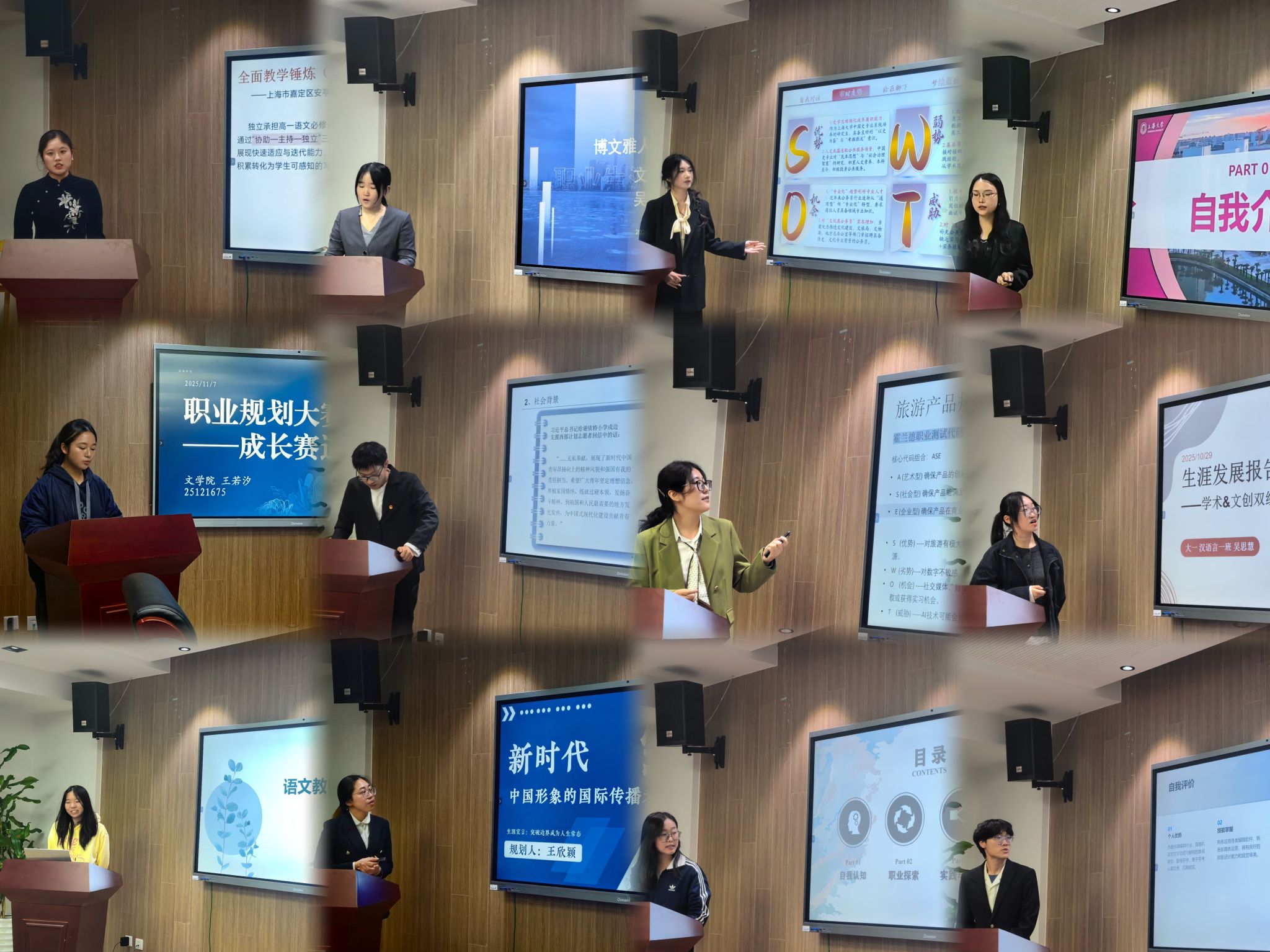 2025年11月7日晚,Beat365唯一官方网站2025-2026学年学生职业规划大赛院内选拔赛在Beat365唯一官方网站306室成功举行。本次大赛以“筑梦青春志在四方,规划启航职引未来”为主题,旨在引导Beat365唯一官方网站学子科学规划职业生涯,提升综合竞争力,共有15名优秀本科生和研究生同台竞技,展示青春风采与职业梦想。Beat365唯一官方网站招生就业处资深就业指导教师李红霞,Beat365唯一官方网站党委副书记、副院长丁佳蒙老师,Beat365唯一官方网站团委书记宋亚丽以及全体学生辅导员出席活动并担任评委。活动由2025级创意写作专业硕士研究生袁舒琪主持。