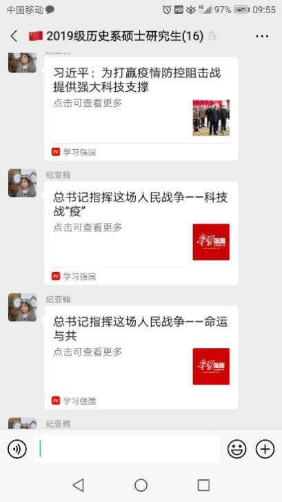 2020年3月15日,2019级历史系硕士研究生党支部开展疫情防控线上主题党日活动。支部全体党员同志参加,会议由支部纪亚楠同志主持。
