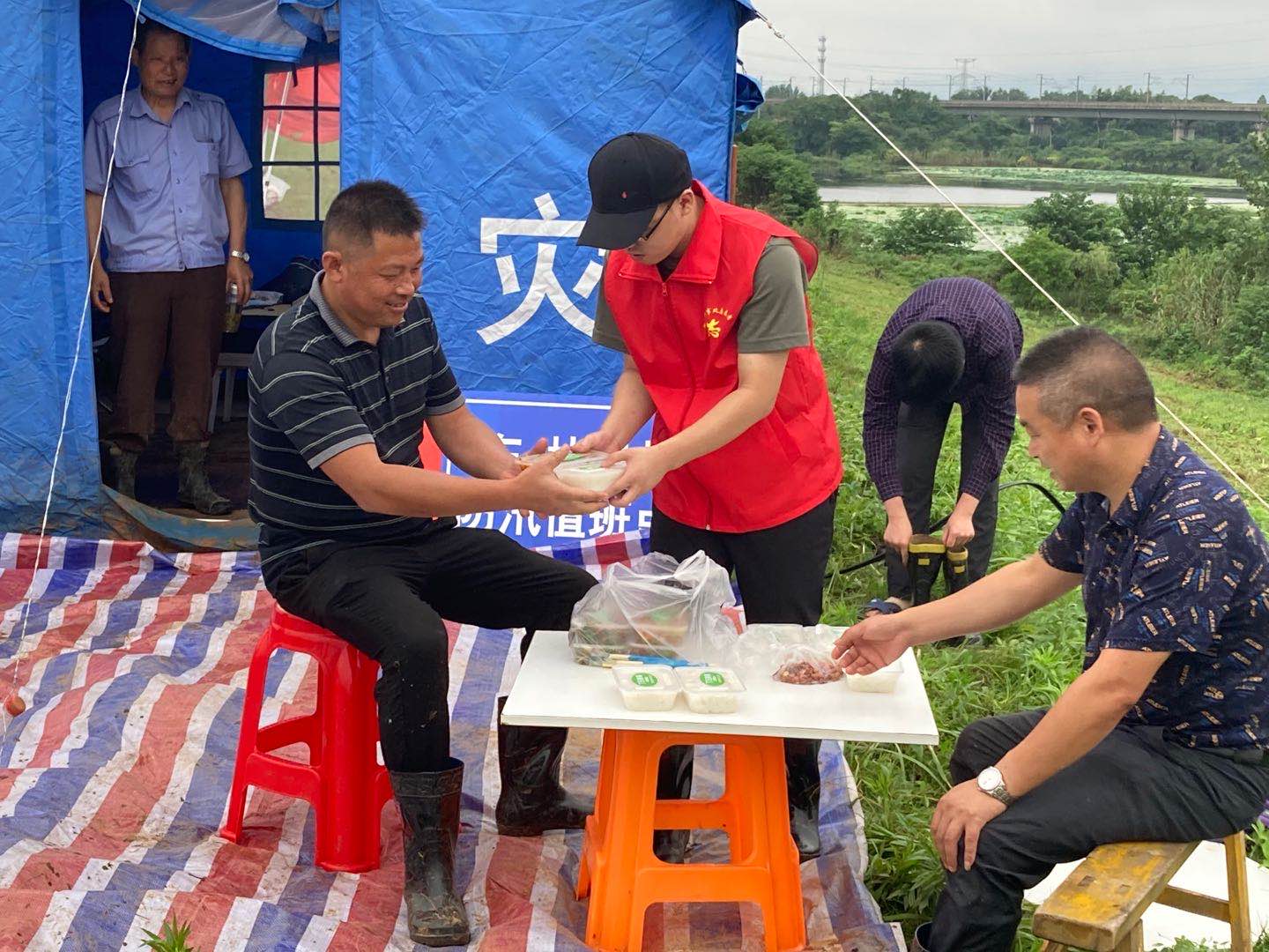 雨季刚来临的时候,丁宇同学就和父母、村里的党员干部、青年劳力主动参与守堤值汛,并定时前往河堤值汛点为值班人员送工作餐。