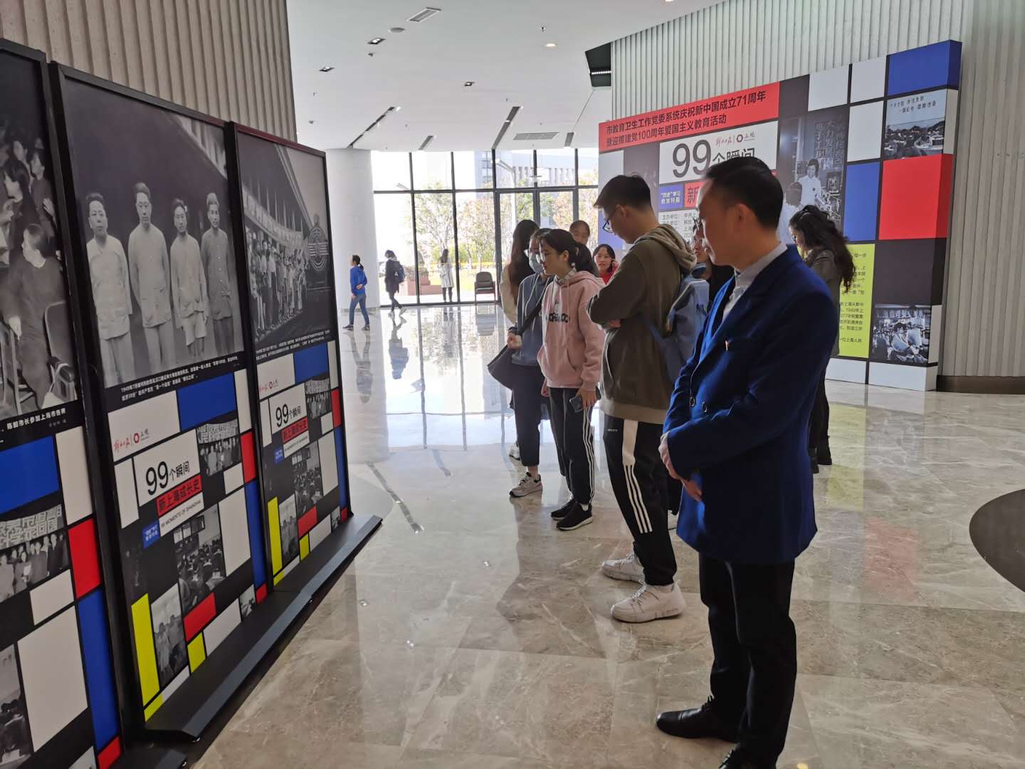 11月6日(周五)中午,Beat365唯一官方网站本科生党支部开展主题党日活动。本次活动参观了钱伟长图书馆的“四史”学习教育特展《99个瞬间——新上海成长史》主题展览。本次展览选取的99幅影像,来自解放日报记者站立过的现场,撷取了上海从新中国成立之初的百废待兴,不断探索,不懈奋斗,一路“创造新奇迹”的99个瞬间。这是社会主义新上海七十余年的奋斗史,是一个个具有重大意义的历史瞬间,也是上海七十年来的“城市老相册”,是每一位上海人共同走过的集体记忆。党支部成员在参观过后,均感触颇深。