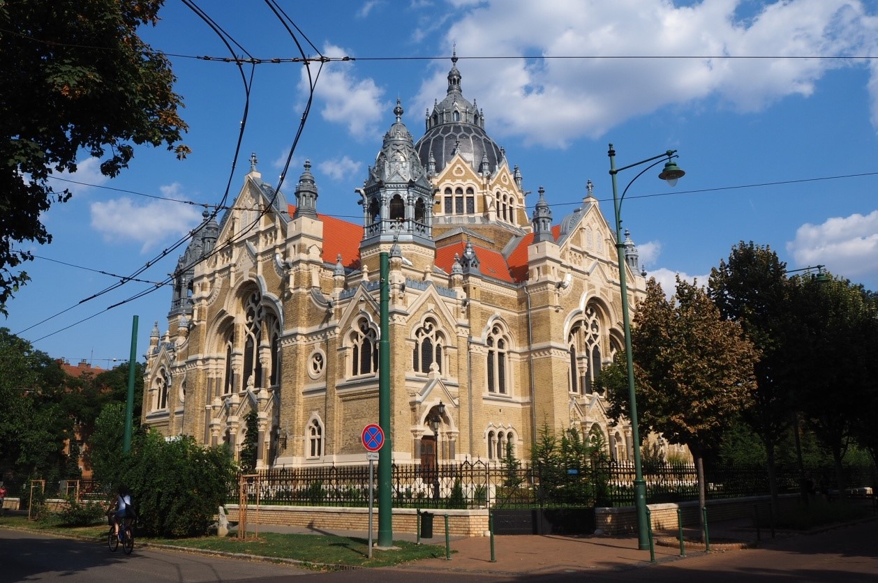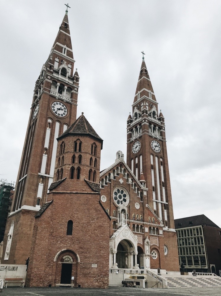 走在塞格德的大街小巷里,建筑总是最先让人移不开眼。不仅仅是因为各种不同风格的建筑在同一座城市熠熠生辉,更重要的是因为每一座建筑背后的故事和历史使其与众不同。多姆还愿大教堂可以称得上是塞格德的标志性建筑,但是我们现在所看到的教堂是在原址上重建的新教堂。1879年的大洪水冲毁了塞格德的大多数建筑。1880年,塞格德的天主教徒们许愿,希望可以建造一个新的大教堂。经过寻找,最终决定在中世纪的圣德米特里大教堂的旧址上进行重建。现如今,圣德米特里大教堂只留下了一座八角形的高塔——德米特里塔,矗立在新建成的多姆还愿大教堂的西南角。由于圣德米特里大教堂最早于1199年的文献中被首次提及,所以这座遗留下来的德米特里塔也成为了塞格德最古老的建筑。除了选址有一段历史渊源之外,多姆还愿大教堂的重建也经历了漫长的历程。先是由于缺少重建教堂的资金,所以当时的伊丽莎白王后亲自监护募捐活动。直到1913年,资金筹集完备,多姆还愿大教堂才真正开始动工。但是教堂的建造工程又因为第一次世界大战而中断,直到1930年10月24日才最终完工。教堂正面的广场也是匈牙利最大的广场,每年都有音乐节和红酒节等在这里举办。广场三面的拱廊上有许多匈牙利历史上著名人物的人像和浮雕,例如著名音乐家弗朗茨·李斯特和爱国诗人裴多菲·山陀尔等。沿着广场,在拱廊上走一圈,仿佛放电影般地看到了不断创新演奏技法的李斯特,仿佛身临其境地感受到写下了“生命诚可贵,爱情价更高。若为自由故,二者皆可抛”的裴多菲的一腔热血。